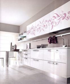 Пример композиции кухни. Возможны различные модификации и варианты отделки. Фасад дверей можно декорировать штампованным рисунком или акриловыми красками с использованием серебряной фольги