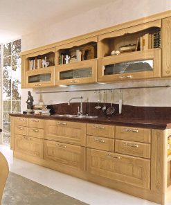 Пример композиции кухни. Столешница из мрамора. Стекла могут быть с шелкографией, с керамической вставкой или без декора. Различные виды ручек для шкафчиков. Возможны различные модификации и варианты отделки
