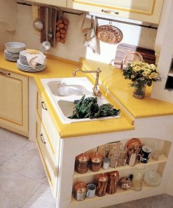Пример композиции кухни. Столешница выполнена из мрамора. Возможны различные варианты отделки, а так же возможны различные комплектации кухни по желанию клиента.