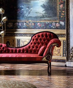 Кушетка. Декорирована резными элементами ручной работы. Наполнение — полиуретан. Возможны различные варианты обивки и отделки.