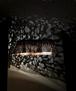 Люстра с фигурным деревянным абажуром с перфорированной поверхностью