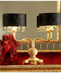 Настольная лампа с 2-мя абажурами, абажуры выполнены из ткани и декорирован кристаллами. Основание декорировано резьбой ручной работы.