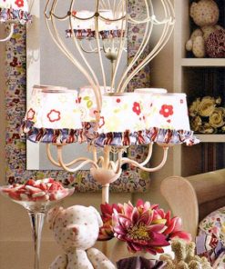 Настольная лампа с 6-ю лампочками, абажуры выполнены из ткани.