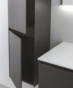 Подвесной пенал с двумя распашными дверцами. Оснащён стеклянными полками. Возможны другие варианты отделки