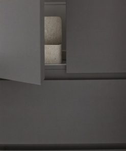 Подвесной пенал с двумя распашными дверцами и двумя выдвижными ящиками. Оснащён стеклянными полками. Возможны другие варианты отделки