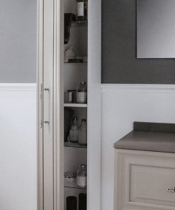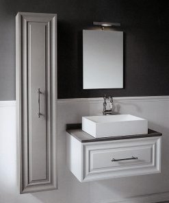 Подвесной пенал с 1 распашной дверцей. Внутреннее оснащение: 1 деревянная и 4 стеклянных полки. Возможны другие варианты отделки.