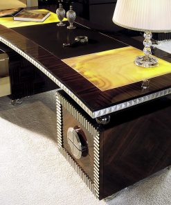 Письменный стол с подсветкой, резными ножками и 3 выдвижными ящиками. Столешница выполнена из оникса, по центру обита кожей. Возможны другие варианты отделки.