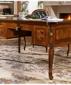 Письменный стол, декорированный резьбой. 5 выдвижных ящиков, кожаная столешница. Возможны другие варианты отделки