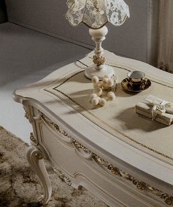 Письменный стол с 5 выдвижными ящиками. Декорирован резьбой. Возможны другие варианты отделки.