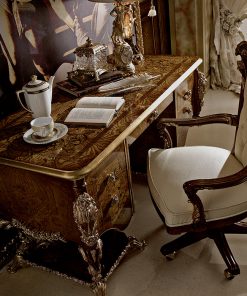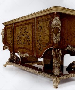 Письменный стол с 5 выдвижными ящиками. Декорирован инкрустацией и резьбой.