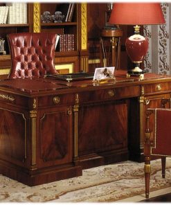 Письменный стол с 9-ю ящиками. Столешница выполнена в отделке из кожи. Декорирован резными элементами. Возможны другие варианты отделки.