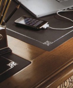 Письменный стол с выдвижными ящиками, модулем с распашной дверцей и обитой столешницей. Декорирован инкрустацией и резной рамой. Возможны другие варианты отделки и обивки