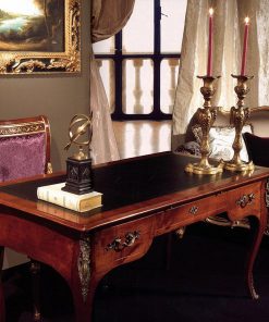 Письменный стол с 3-мя ящиками. Столешница выполнена из кожи. Декорировано резными элементами. Возможны другие варианты отделки.