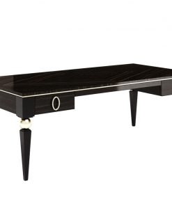 Письменный стол с двумя выдвижным ящиками. Декорирован инкрустацией и металлическими элементами. Возможны другие варианты отделки