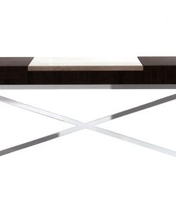 Письменный стол с выдвижным ящиком. Центральная часть столешницы обтянута кожей. Основание выполнено из металла. Возможны другие варианты отделки и обивки