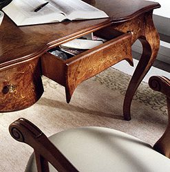 Письменный стол из массива ясеня с тремя выдвижными ящиками. Украшен инкрустацией. Возможны другие варианты отделки.