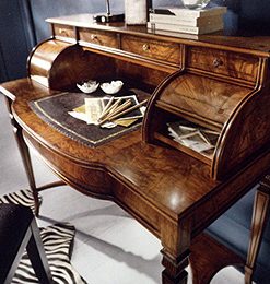 Письменный стол с выдвижными ящиками. Поверхность стола покрыта кожей. Возможны другие варианты отделки.