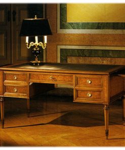 Письменный стол с выдвижными подставками по бокам. Структура — вишня, радика мирта, кожаный топ. Возможен другой цвет кожи