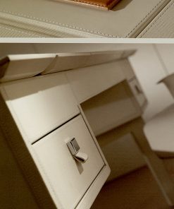 Письменный стол с откидными дверцами, зеркалом и 2 выдвижными ящиками. Обит кожей. Возможны другие варианты обивки.