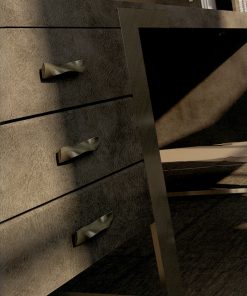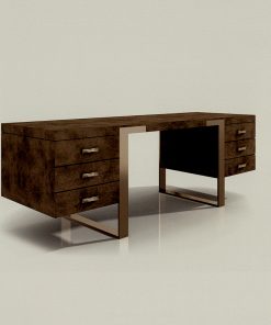 Письменный стол с 6 выдвижными ящиками и металлическими ножками. Обит кожей. Возможны другие варианты отделки и обивки.