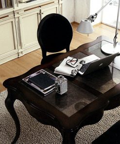 Письменный стол с тремя выдвижными ящиками. Столешница выполнена со вставками из секла. Возможны другие варианты отделки.