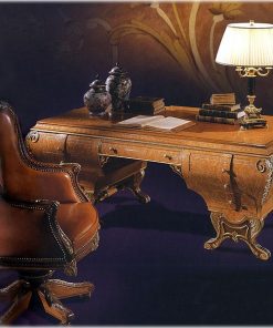 Письменный стол с 7-ю ящиками, столешница выполнена в отделке из кожи, декорирован резными элементами. Возможны другие варианты отделки.