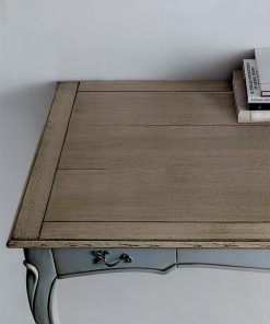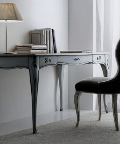 Письменный стол с 3 выдвижными ящиками. Структура — липа, ясень, дуб или вишня. Замок, ключ и ручки отлиты из меди с обработкой под старинную медь или старинное серебро. Возможны другие варианты отделки.