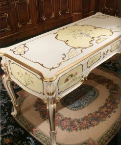 Письменный стол с 3-мя ящиками, декорирован резными элементами и росписью ручной работы. Возможны другие варианты отделки.