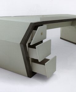 Письменный стол с 6 выдвижными ящиками. Обит кожей с деревянными краями. Возможны другие варианты отделки и обивки.