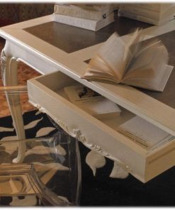 Письменный стол с 1-м ящиком. Столешниц выполнена в отделке из кожи. Декорирован резьбой. Возможны другие варианты отделки.
