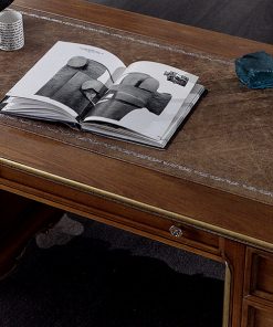 Письменный стол с 7 выдвижными ящиками. Декорирован резьбой. Столешница обита кожей. Возможны другие варианты отделки и обивки.