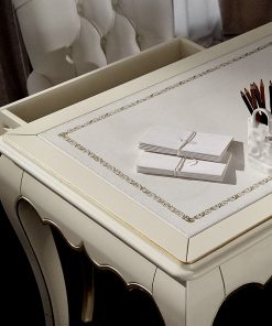 Письменный стол с 2 выдвижными ящиками. Столешница обита кожей. Возможны другие варианты отделки и обивки.
