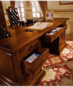 Письменный стол с 9-ю ящиками, столешница выполнена в отделке из кожи. Декорирован резными элементами. Возможны другие варианты отделки.