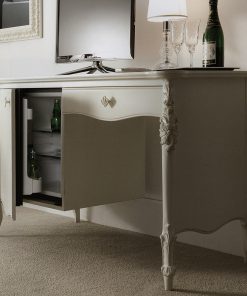 Письменный стол с выдвижным ящиком и холодильником. Декорирован резьбой. Возможны другие варианты отделки.