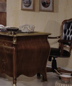 Письменный стол с 7 выдвижными ящиками и обитой столешницей. Декорирован инкрустацией и резьбой. Возможны другие варианты отделки и обивки.