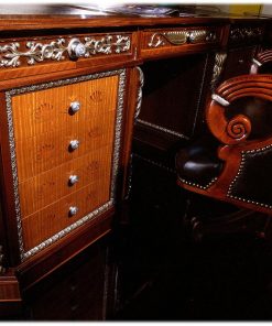Письменный стол с 11-ю ящиками, столешница выполнена из кожи, декорирован резными элементами ручной работы. Возможны другие варианты отделки.