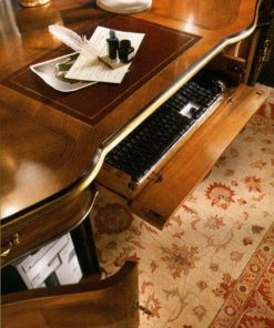 Письменный стол с 5-ю ящиками и 1-ой дверцей. Столешница выполнена в отделке из кожи. Декорирован резными элементами. Возможны другие варианты отделки.