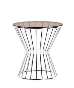 Подставка с и круглой стеклянной столешницей и фигурным металлическим основанием. Возможны другие варианты отделки