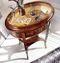 Подставка овальной формы со стеклянной формы. Украшена инкрустацией. Возможны другие варианты отделки.