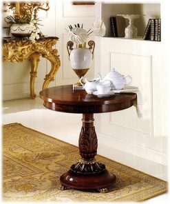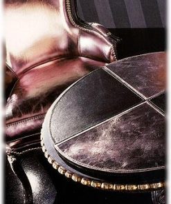 Круглая подставка, столешница выполнена в отделке из кожи, декорирована резьбой ручной работы. Возможны другие варианты отделки.