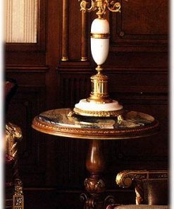 Круглая подставка, столешница выполнена из мрамора, декорирована резными элементами. Возможны другие варианты отделки.
