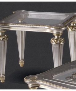 Квадратная подставка, декорирована резными элементами. Столешница выполнена из стекла. Возможны другие варианты отделки.
