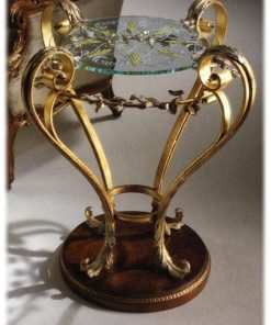 Круглая подставка. столешница выполнена из стекла. Декорирована резными элементами ручной работы. Возможны другие варианты отделки.