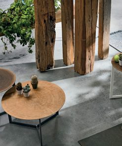 Круглая подставка с металлическим основанием и деревянной столешницей. Возможны другие варианты отделки.