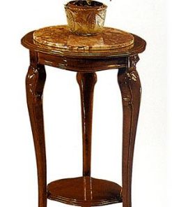 Круглая подставка с полкой, столешница выполнена из стекла(возможны разные варианты столешницы: мрамор, дерево). Возможны другие варианты отделки.