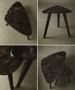 Подставка с фигурной мраморной столешницей и тремя деревянными ножками. Возможны другие варианты отделки. Пуф в мягкой обивке заказывается дополнительно