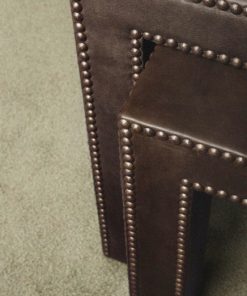 Подставка в кожаной обивке с квадратной столешницей и четырьмя ножками. Декорирована металлическими кнопками. Возможны другие варианты обивки