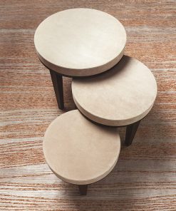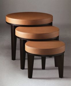 Подставка с круглой столешницей в кожаной обивке и тремя ножками. Возможны другие варианты отделки и обивки