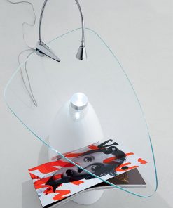Подставка с фигурной стеклянной столешницей. Основание выполнено из полиуретана и оснащено полкой для журналов. Возможны другие варианты отделки. Светильник заказывается дополнительно