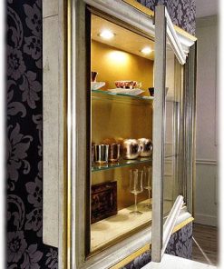1-дверная полка в раме с подсветкой, внутренние полки выполнены из стекла. Возможны другие варианты отделки.